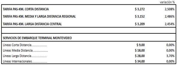 Ajuste de tarifas en el transporte interdepartamental de pasajeros a partir de las cero horas del próximo 1º de setiembre, se modifica la tarifa de los servicios regulares de transporte colectivo de pasajeros por carretera en líneas nacionales interdepartamentales. El incremento promedio es de 2,483 porciento.
