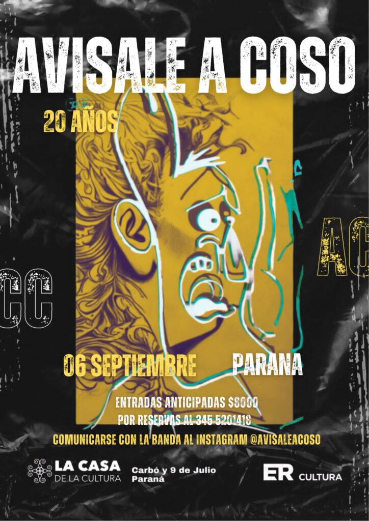 La emblemática banda concordiense Avisale a Coso, referente de la música rioplatense con una fusión única de rock, reggae y folclore, cumple 20 años de trayectoria y lo festeja con un show imperdible en la ciudad de Paraná.