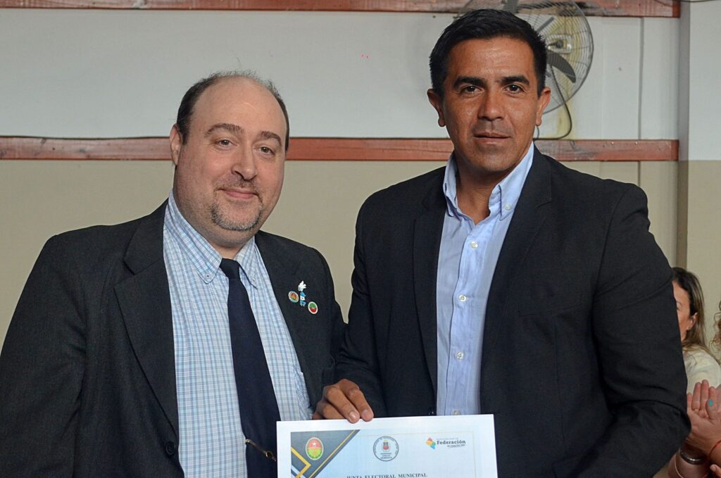 El Presidente Municipal de la ciudad de Federación Ricardo Bravo, reelecto en los comicios del 22 de octubre, la Vicepresidenta Municipal electa Silvana Monzón y los integrantes de la lista de Concejales electos, recibieron sus respectivos Diplomas, de parte del Presidente de la Junta Electoral Sergio Rondoni Caffa.