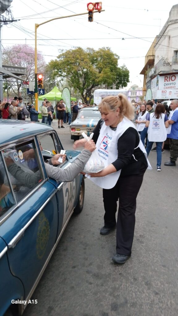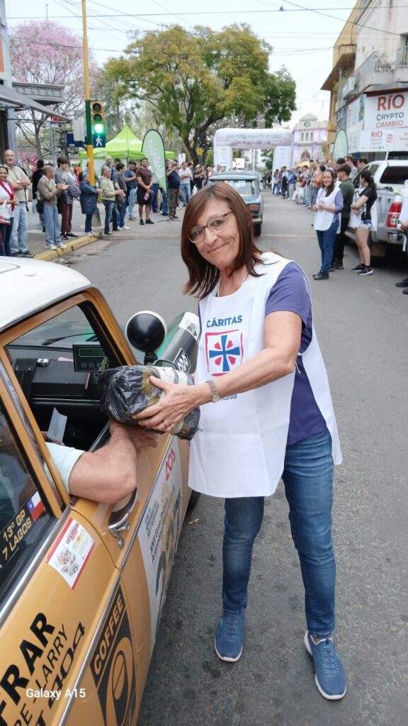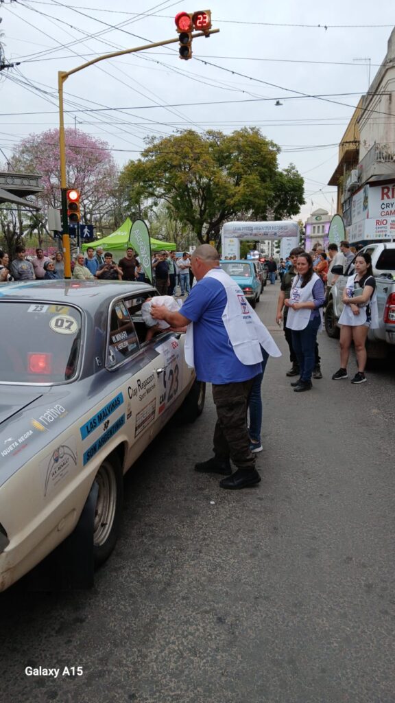 En la llegada a Concordia de los autos que recorren el país con el Gran Premio Argentino Histórico, se hizo presente el equipo de colaboradores de Cáritas Concordia, quienes recibieron a los competidores en el marco de la iniciativa solidaria que acompaña al evento.