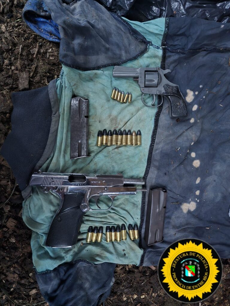 En esas circunstancias es que se secuestró un arma de fuego, de puño, tipo pistola, calibre 9mm., cromada; con dos cargadores de 9 mm., con la totalidad de dieciocho cartuchos 9 mm.; y un arma de fuego, tipo revolver, calibre .22 largo, con tambor de seis alvéolos, el que poseía seis cartuchos completos calibre .22; los cuales tienen estrecha relación con los utilizados en el hecho delictivo mencionado.