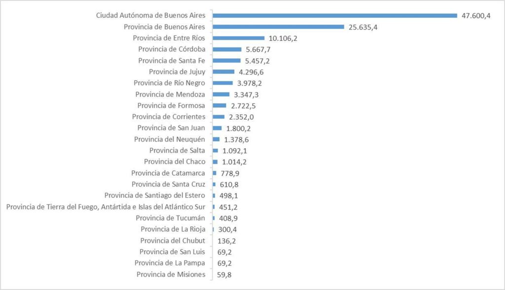 La cifra recibida por Entre Ríos supera ampliamente los valores percibidos por otras provincias de similar dimensión y población, como Río Negro (5.299 pesos), Jujuy (5.294 pesos) y Formosa (4.482 pesos), y es más de tres veces mayor que la media registrada en distritos como Córdoba, Buenos Aires o Santa Fe.