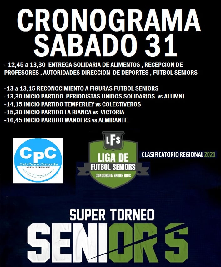Llegó el momento del inicio del Super Torneo Seniors, el próximo sábado en Cancha del Club Pesca, dónde se realizará conjuntamente una jornada solidaria.