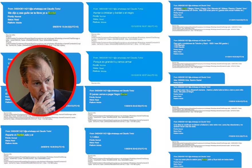 El mismo día que mandó ese mail, Claudio Tórtul le contó a su hermano por WhatsApp que estaba almorzando con “El Negro” (Laporte) en su casa y acordaron una reunión para el día siguiente en su despacho. “Ahi cuando se iba (recien) el Negro me pregunto cuando esta la plata de Bord …”, escribió el empresario a las 19:39.