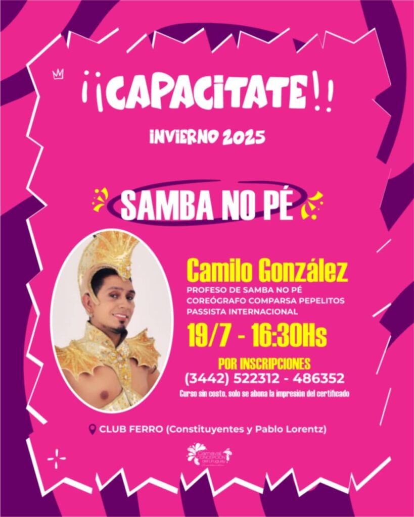 Dictado por Camilo González, passista internacional, profesor y coreógrafo de la comparsa Papelitos. Será en el Club Ferro (Constituyentes y Pablo Lorentz).