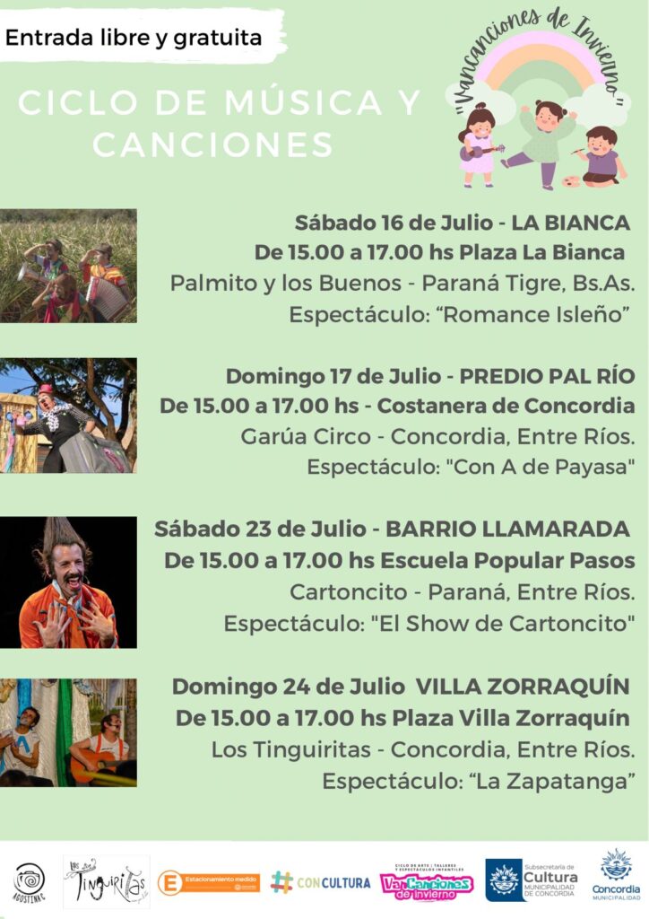 Desde el sábado 16 hasta el domingo 24 de julio se va a desarrollar la 8° Edición de “Vancanciones de Invierno” en distintos espacios públicos de la ciudad, para que todas las familias concordienses puedan disfrutar de este ciclo de manera libre y gratuita.