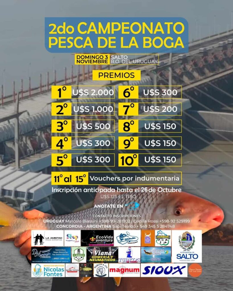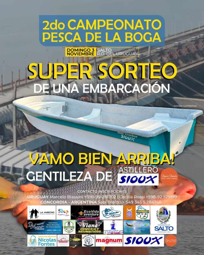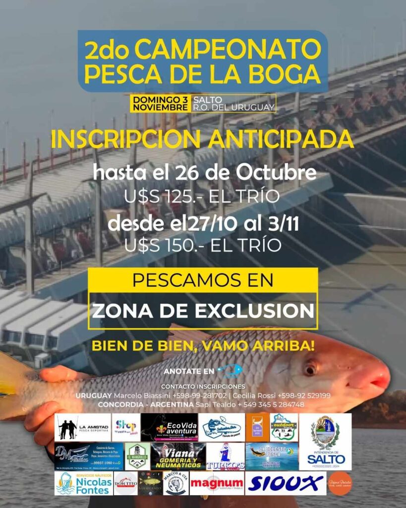Se viene 2° Campeonato Pesca de la Boga, Salto R.O. del Uruguay, el concurso de pesca embarcada por tríos para el Domingo 3 de Noviembre 2024.