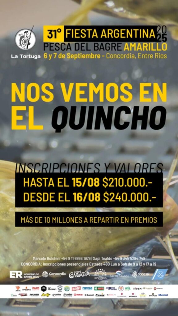 Es por esto, que la misma se va a desarrollar los días 6 y 7 de Septiembre en la zona de la Represa de Salto Grande, con la presencia de pescadores de Santa Fe, Corrientes, Córdoba, Formosa, Buenos Aires, R.O del Uruguay, diferentes localidades entrerrianas, y numerosas embarcaciones de nuestra ciudad.